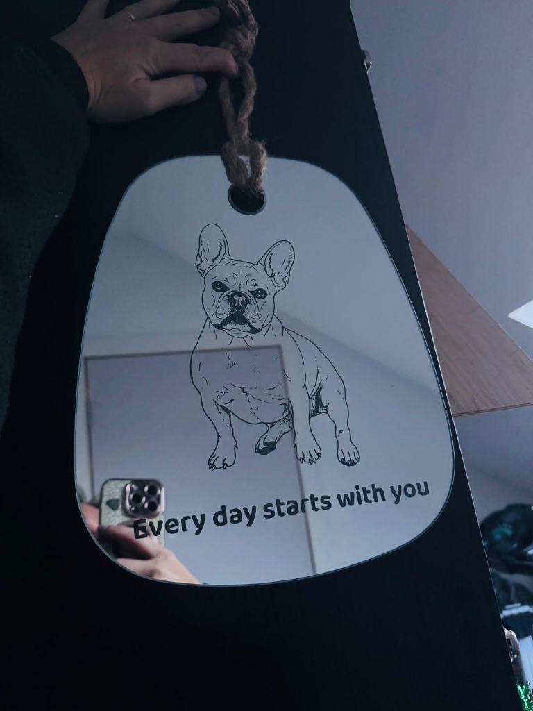 Verfijnde gravure: Of het nu gaat om een lijntekening van je huisdier, een betekenisvolle naam of een tekst zoals "Every day starts with you", de gravure is scherp en duurzaam.